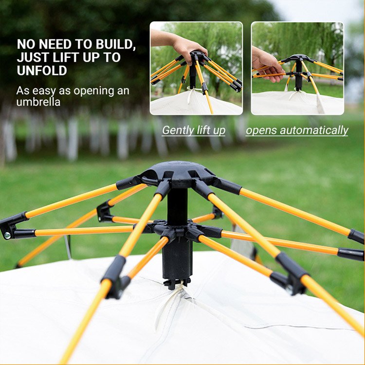 नाविन्यपूर्ण स्वयंचलित उघडण्याचे तंत्रज्ञान जे काही सेकंदात तंबू पूर्ण आकारात येण्यास अनुमती देते, जटिल असेंबली प्रक्रिया काढून टाकते आणि कॅम्पिंगचा मौल्यवान वेळ वाचवते.