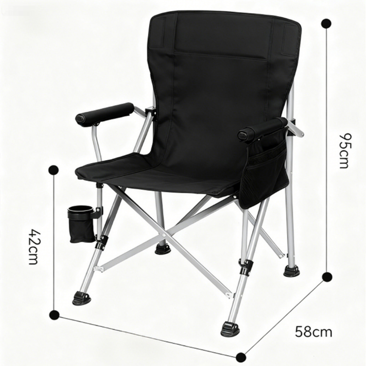 600D ऑक्सफर्ड आउटडोअर फोल्डिंग आर्मचेअर चेअर डायरेक्टर कार्बन. युअर अल्टिमेट आउटडोअर सीटिंग सोल्यूशन. या 600D ऑक्सफोर्ड फोल्डिंग आर्मचेअरमध्ये सोयीस्कर आर्मरेस्टसह टिकाऊ कार्बन स्टील फ्रेम आहे. स्टोरेज पॉकेट आणि कप होल्डरसह पूर्ण, हे कॅम्पिंग, फिशिंग आणि बीच आउटिंगसाठी योग्य आहे.