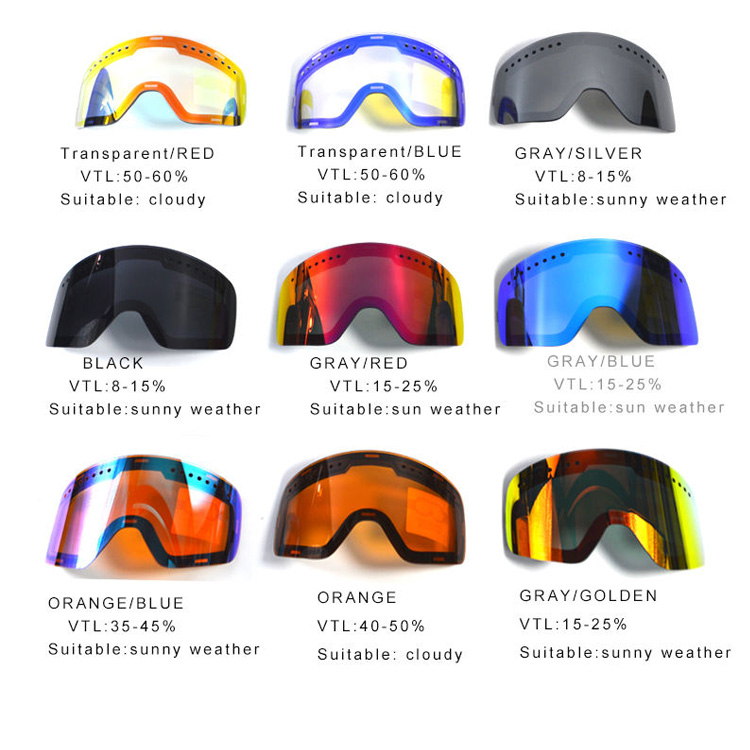 अँटी-फॉग कस्टम मॅग्नेटिक यूव्ही 400 स्टायलिश स्नो स्कीइंग गॉगल. व्यावसायिक हिवाळी खेळांसाठी तुमचे प्रमुख घाऊक समाधान. या स्की गॉगल्समध्ये कस्टम मॅग्नेटिक UV400 संरक्षणासह मिरर केलेले अँटी-फॉग लेन्स आहेत. स्टायलिश डबल-लेयर डिझाइन सर्व स्नो स्कीइंग साहसांसाठी अतुलनीय स्पष्टता आणि आरामाची खात्री देते.