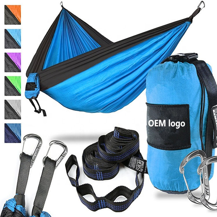 बॅकपॅकिंग ट्रॅव्हल डबल पॅराशूट कॅम्पिंग हॅमॉक. बाहेरच्या आराम आणि साहसासाठी तुमची प्रीमियम निवड. हा उच्च-गुणवत्तेचा पॅराशूट हॅमॉक सिंगल आणि डबल ऑक्युपन्सीसाठी इंजिनिअर केलेला आहे. बॅकपॅकिंग आणि प्रवासासाठी योग्य, हे अविस्मरणीय आउटडोअर अनुभवांसाठी उत्कृष्ट पोर्टेबिलिटीसह टिकाऊ साहित्य एकत्र करते.