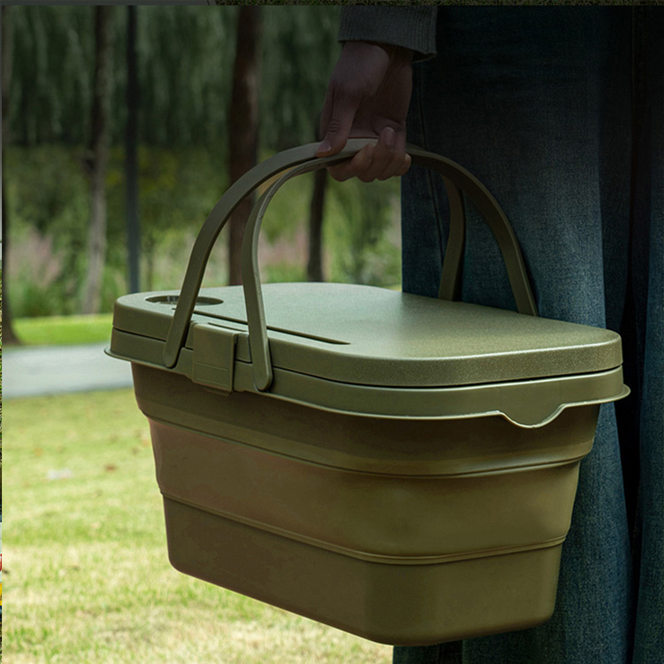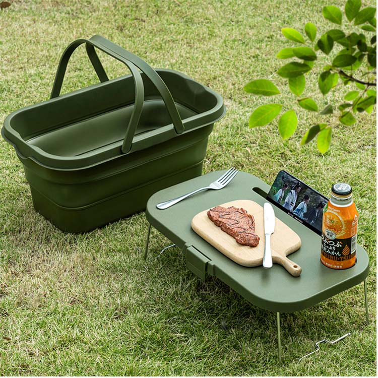 बास्केट आउटडोअर कॅम्पिंग हायकिंग पिकनिक स्टोरेज कंटेनर. बाहेरच्या साहसांसाठी तुमचे अल्टिमेट पोर्टेबल ऑर्गनायझेशन सोल्यूशन. ही मल्टीफंक्शनल फोल्डेबल बास्केट एका अंगभूत टेबल पृष्ठभागासह स्टोरेज कंटेनर एकत्र करते. टिकाऊ प्लास्टिकपासून तयार केलेले, हे कॅम्पिंग, हायकिंग आणि पिकनिक आउटिंगसाठी योग्य आहे.