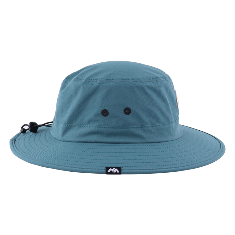 बकेट हॅट क्विक-ड्राय ब्रीद करण्यायोग्य आउटडोअर लाइटवेट कॅप. तुमचे प्रीमियम कस्टमाइझ करण्यायोग्य सूर्य संरक्षण समाधान. या टील बकेट हॅटमध्ये उन्हाळ्याच्या इष्टतम आरामासाठी द्रुत-कोरडे श्वास घेण्यायोग्य फॅब्रिक आहे. सानुकूल एम्ब्रॉयडरी लोगो पर्याय आणि ॲडजस्टेबल ड्रॉस्ट्रिंगसह, ते सर्व बाह्य क्रियाकलापांसाठी शैली आणि कार्यक्षमता प्रदान करते.