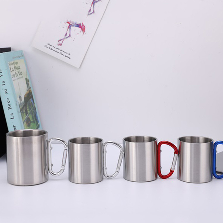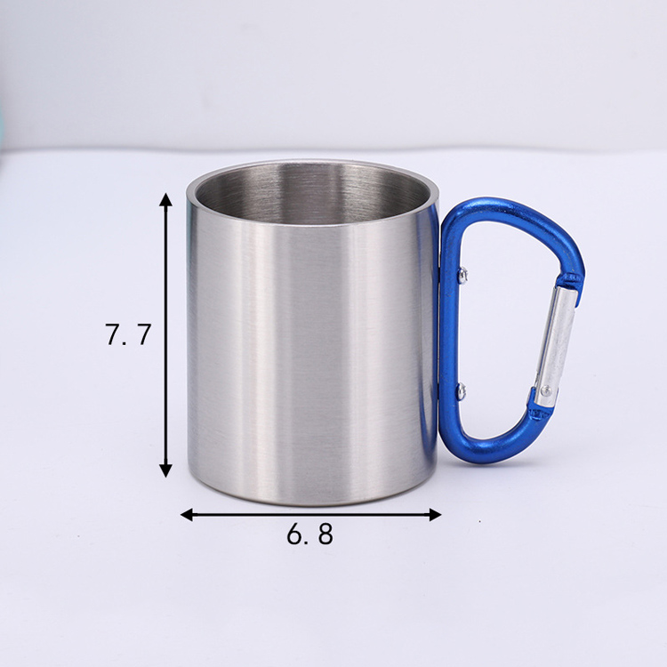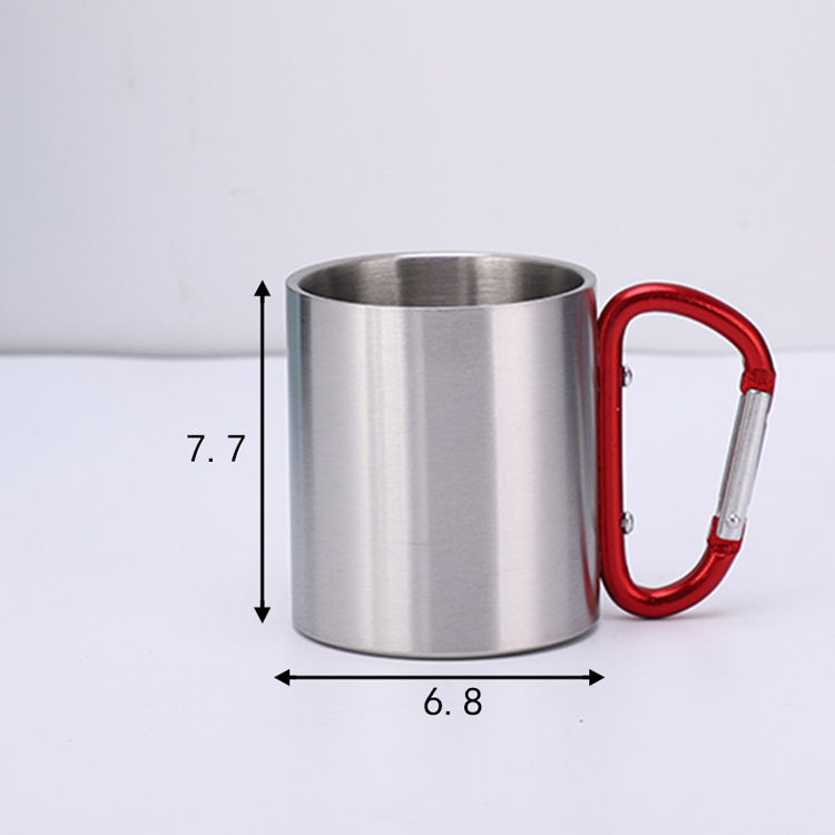 कॅम्पिंग डबल वॉल स्टेनलेस स्टील ट्रॅव्हल टम्बलर फ्लास्क. बाहेरच्या साहसांसाठी तुमचे अल्टिमेट पोर्टेबल थर्मल सोल्यूशन. या 220ml स्टेनलेस स्टील टंबलरमध्ये डबल-वॉल व्हॅक्यूम इन्सुलेशन आणि सोयीस्कर कॅराबिनर हँडल आहे. प्रवासासाठी योग्य, ते थंड आणि गरम दोन्ही पेयांसाठी इष्टतम तापमान राखते.