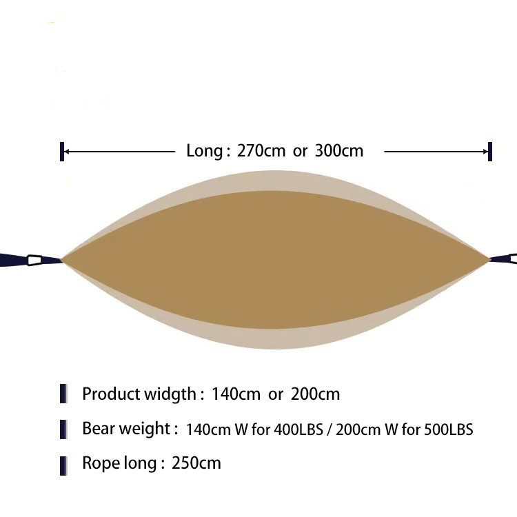 एकल विश्रांती आणि दुहेरी सहवास या दोहोंसाठी उत्तम प्रकारे डिझाइन केलेले. हा हॅमॉक दोन प्रौढांसाठी पुरेशी जागा आणि बळकट सपोर्ट प्रदान करतो, ज्यामुळे ते रोमँटिक गेटवे किंवा सोलो साहसांसाठी आदर्श बनते.