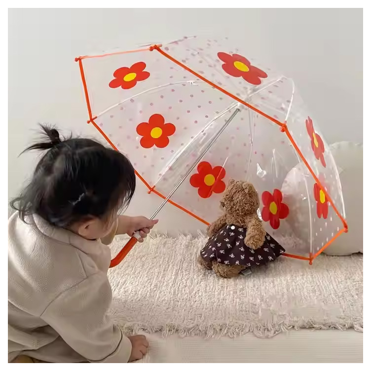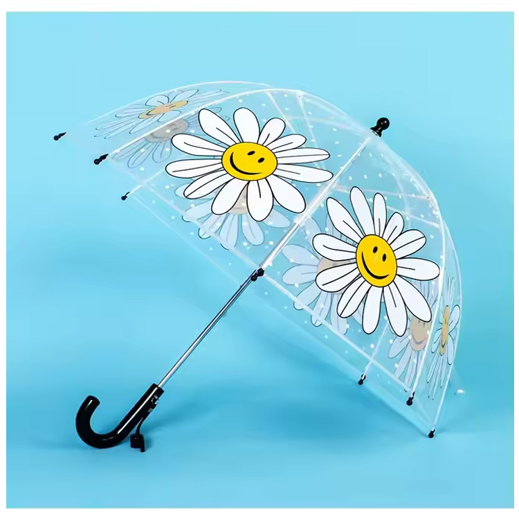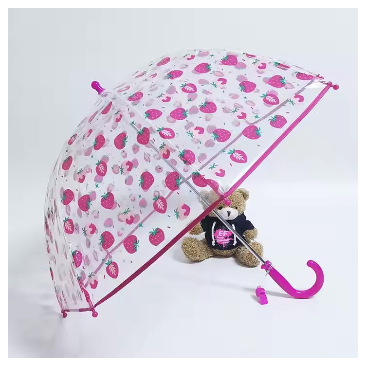 चमकदार आणि खेळकर युनिकॉर्न आणि इंद्रधनुष्याच्या प्रिंटमध्ये झाकलेली, ही छत्री त्वरित मुलांचे लक्ष वेधून घेते. त्याची पारदर्शक छत मुलांना सुरक्षित राहून ते कुठे जात आहेत हे पाहू देते — प्रत्येक पावसाळ्याच्या दिवसात मजा आणि जादू जोडते.