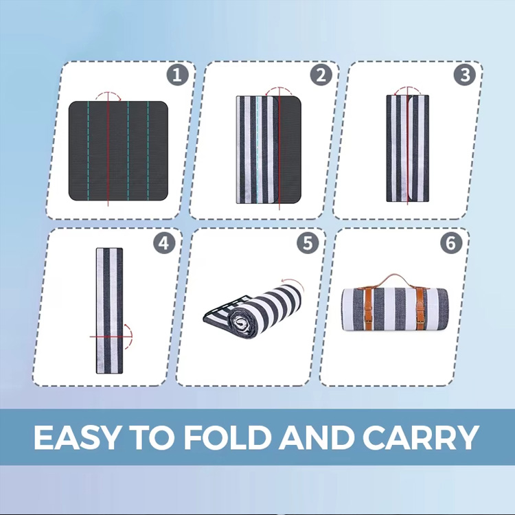 फोल्डिंग स्ट्रीप्ड टिकाऊ वॉटरप्रूफ पिकनिक मॅट ब्लँकेट. पिकनिक आणि साहसांसाठी तुमचा प्रीमियर आउटडोअर साथी. या फॅक्टरी-डायरेक्ट पिकनिक मॅटमध्ये सोयीस्कर कॅरी हँडलसह कॉम्पॅक्ट फोल्डिंग डिझाइन आहे. पट्टेदार टिकाऊ वॉटरप्रूफ फॅब्रिकने तयार केलेले, ते घाऊक ग्राहकांसाठी सानुकूल मुद्रण पर्याय देते.