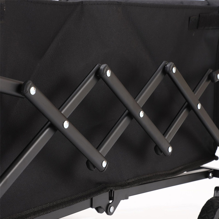 गंज-प्रतिरोधक 304 स्टेनलेस स्टील आणि प्रबलित जोडांनी बांधलेली, ही वॅगन 150kg पर्यंतच्या भारांना समर्थन देत असाधारण टिकाऊपणा प्रदान करते, ज्यामुळे ते खडबडीत बाहेरच्या वापरासाठी आदर्श बनते.