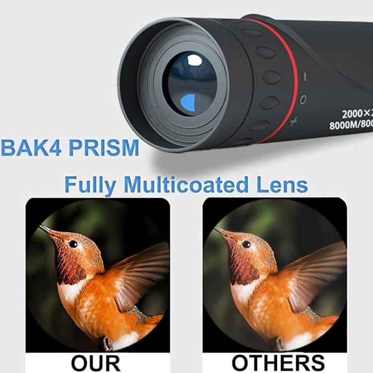 हाय-डेफिनिशन आउटडोअर कॅम्पिंग लांब-अंतराची दुर्बीण. मैदानी साहसांसाठी तुमचे अंतिम पोर्टेबल निरीक्षण साधन. हे 8x हाय-डेफिनिशन मोनोक्युलर टेलिस्कोप कॉम्पॅक्ट डिझाइनमध्ये कुरकुरीत लांब-अंतराचे दृश्य प्रदान करते. कॅम्पिंग, हायकिंग आणि वन्यजीव निरीक्षणासाठी योग्य, हे अपवादात्मक पोर्टेबिलिटीसह शक्तिशाली कामगिरीची जोड देते.