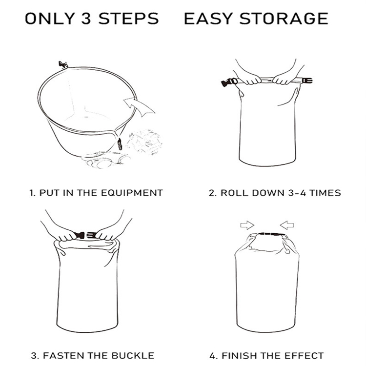 हलके पण आश्चर्यकारकपणे टिकाऊ डिझाइन ड्राय बॅग, बॅकपॅक आणि स्टोरेज सॅक कॉन्फिगरेशनमध्ये अखंडपणे बदलते, विविध क्रियाकलापांदरम्यान आरामदायी वाहून नेण्यासाठी समायोजित करण्यायोग्य खांद्याच्या पट्ट्यांसह.