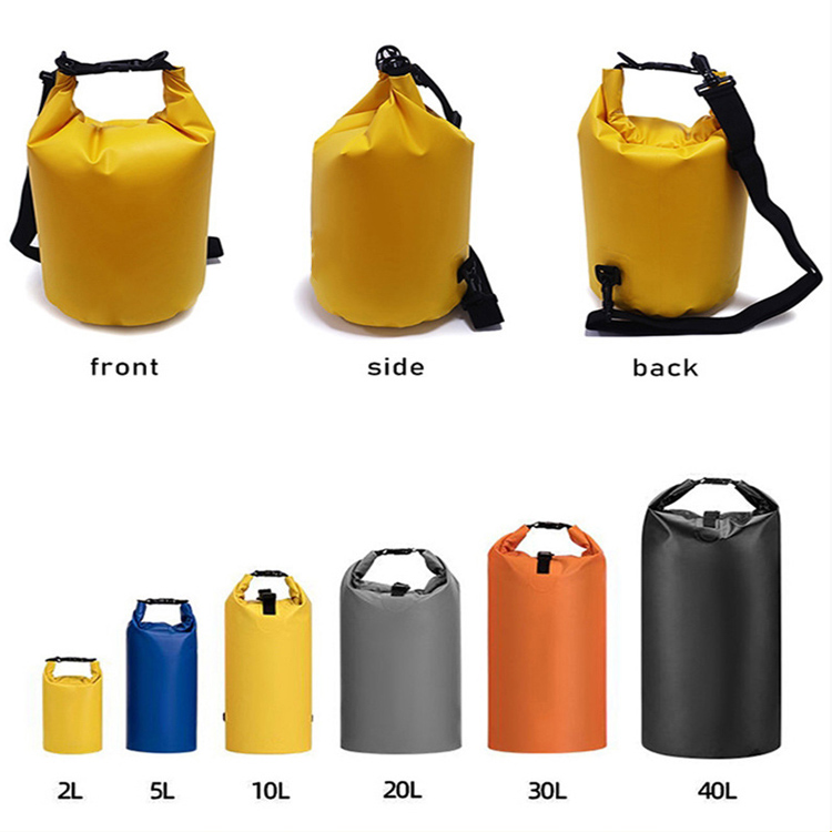 छापील पोर्टेबल फोल्डेबल 2L 5L 10L 20L 40L वॉटरप्रूफ बॅग. जलीय साहसांसाठी तुमचे अल्टिमेट वॉटरप्रूफ स्टोरेज सोल्यूशन. या लोगो-इंप्रिंट केलेल्या ड्राय बॅगमध्ये 2L ते 40L पर्यंत अनेक क्षमतेचे पर्याय आहेत. समुद्रकिनारा प्रवास, राफ्टिंग आणि बाह्य क्रियाकलापांसाठी योग्य, ते कोणत्याही वातावरणात संपूर्ण कोरडे साठवण संरक्षण प्रदान करतात.