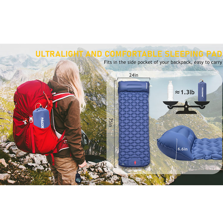 अंगभूत समायोज्य हवा उशी मानेला योग्य आधार प्रदान करते आणि कमीतकमी पॅक वजन राखून झोपण्याच्या आरामात वाढ करून, स्वतंत्र उशी उपकरणांची आवश्यकता दूर करते.