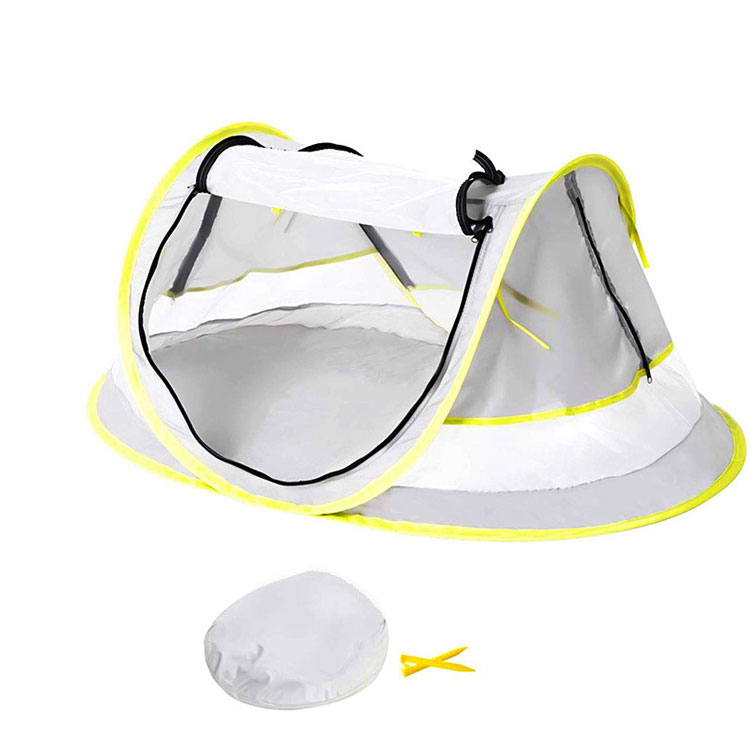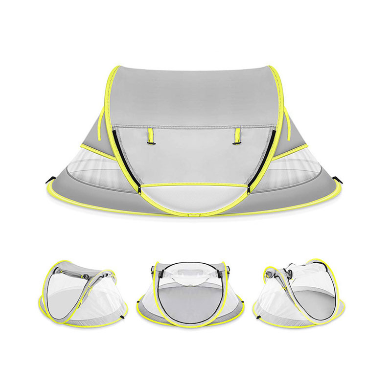 लाइटवेट सिंगल लेअर वॉटरप्रूफ पॉलिस्टर पॉप-अप टेंट. कौटुंबिक साहसांसाठी तुमचा अंतिम उन्हाळी बीच निवारा. या लाइटवेट पॉप-अप टेंटमध्ये सिंगल-लेअर वॉटरप्रूफ पॉलिस्टर बांधकाम, चार लोकांना आरामात सामावून घेणारे वैशिष्ट्य आहे. बीच आउटिंग आणि सीझनल कॅम्पिंगसाठी योग्य, हे विश्वसनीय हवामान संरक्षणासह जलद सेटअप एकत्र करते.