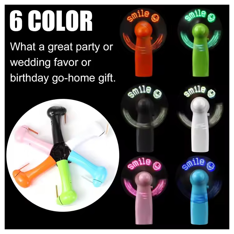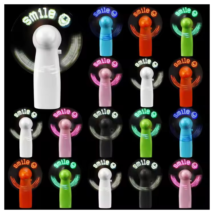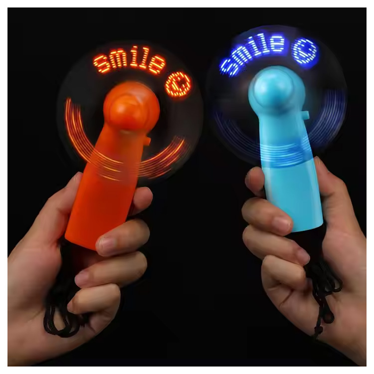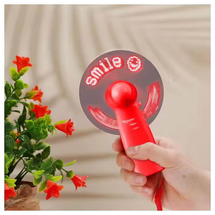 नवीन मिनी पोर्टेबल हँडी एलईडी कस्टम मेसेज बॅटरी फॅन. मिनी पोर्टेबल एलईडी मेसेज फॅन — कॉम्पॅक्ट, बॅटरी पॉवर्ड आणि स्क्रोलिंग टेक्स्टसह सानुकूल करण्यायोग्य. तेजस्वी LED लाइट्समध्ये तुमचा ब्रँड किंवा संदेश प्रदर्शित करताना थंड वाऱ्याची झुळूक देते. इव्हेंट्स, पार्ट्या किंवा प्रमोशनल गिव्हवेजसाठी योग्य.