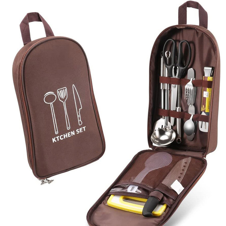 स्पून, चॉपस्टिक्स, चाकू आणि इतर कुकवेअर सुरक्षितपणे व्यवस्थित करण्यासाठी रणनीतिकदृष्ट्या डिझाइन केलेली अंतर्गत विभाजने आणि लवचिक लूपची वैशिष्ट्ये, वाहतुकीदरम्यान आवाज आणि नुकसान टाळण्यासाठी.