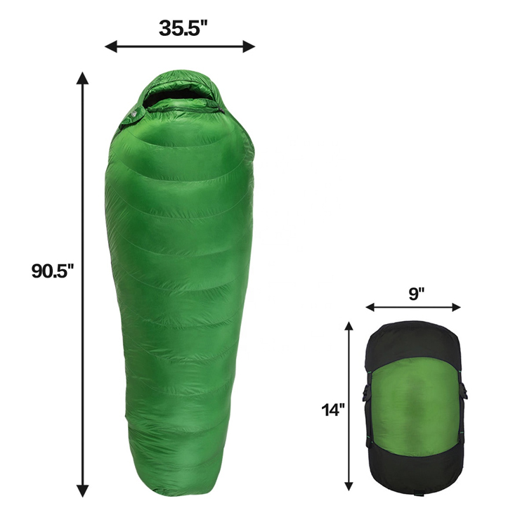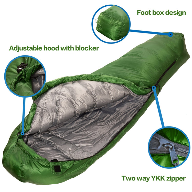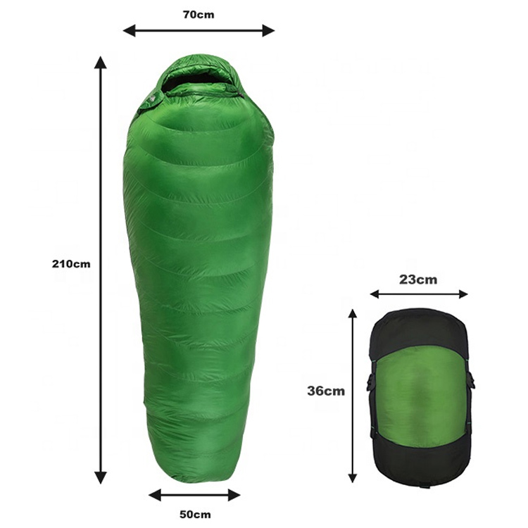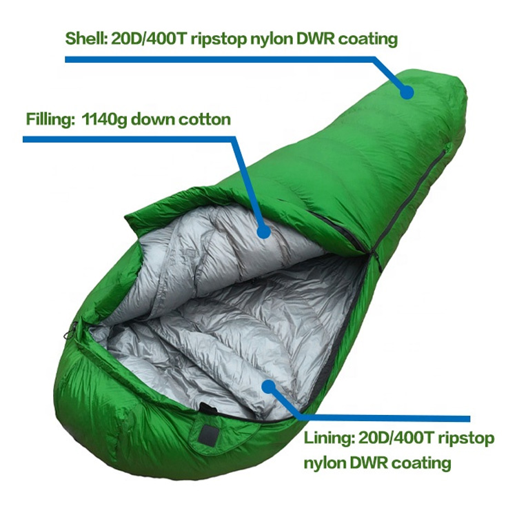 आउटडोअर अल्ट्रालाइट पोर्टेबल कोल्ड वेदर मम्मी स्लीपिंग बॅग. वाळवंटातील साहसांसाठी तुमचे अंतिम थंड-हवामानातील झोपेचे समाधान. या अल्ट्रालाइट ममी स्लीपिंग बॅगमध्ये प्रीमियम डक गूज डाउन इन्सुलेशन कमाल उबदारतेसाठी आहे. गंभीर कॅम्पिंगसाठी डिझाइन केलेले, हे कमीतकमी पॅक वजनासह अपवादात्मक थर्मल कार्यक्षमता एकत्र करते.