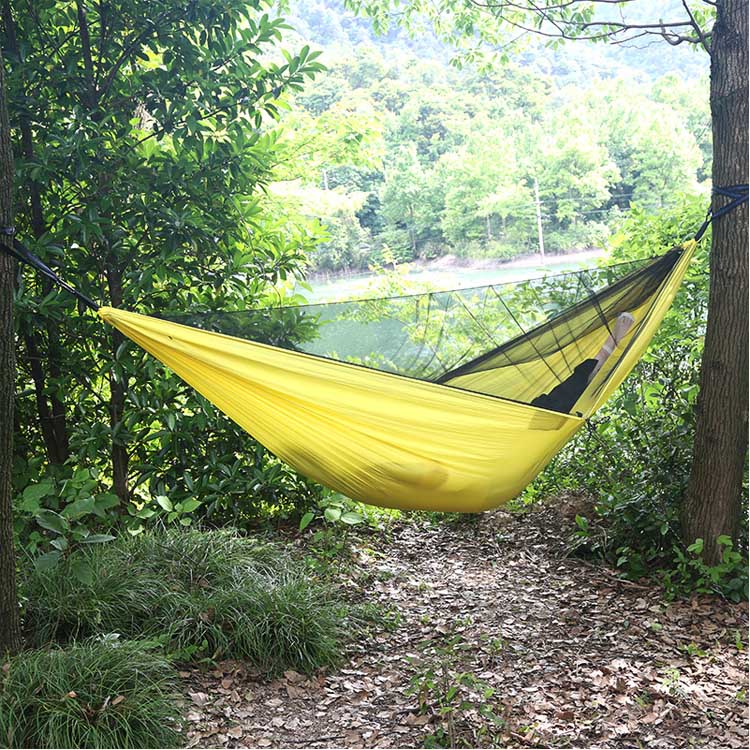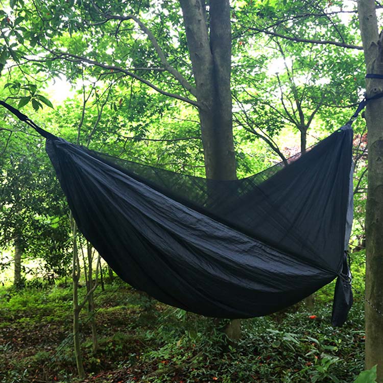 बारीक-जाळीची जाळी झिपर्ड एंट्री सिस्टमसह हॅमॉकला पूर्णपणे झाकून टाकते, उत्कृष्ट वायुप्रवाह राखून डास आणि इतर चावणाऱ्या कीटकांविरूद्ध एक अभेद्य अडथळा निर्माण करते.
