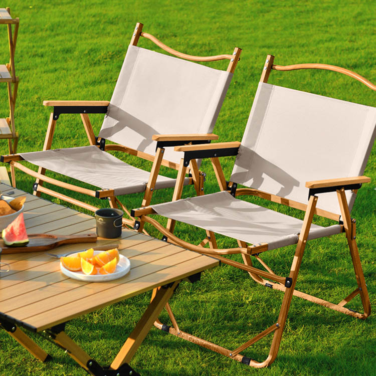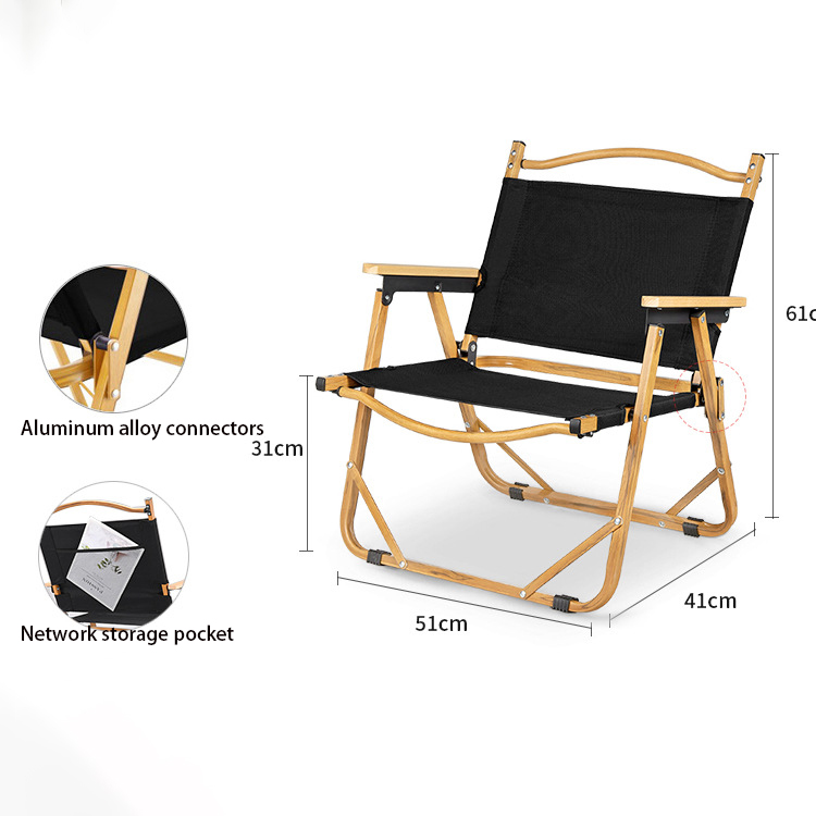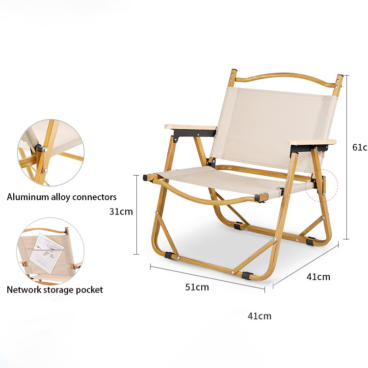 पोर्टेबल ट्रॅव्हल फोल्डेबल आउटडोअर डायनिंग बीच कॅम्पिंग चेअर. तुमचे प्रीमियर पोर्टेबल सीटिंग सोल्यूशन इनडोअर आणि आउटडोअर वापरासाठी. ही हॉट-सेलिंग ट्रॅव्हल चेअर हलक्या वजनाच्या फोल्डेबल फ्रेमला मोहक स्टील आणि सॉलिड वुड ॲक्सेंटसह एकत्र करते. आउटडोअर डायनिंग, बीच रिलॅक्सेशन आणि कॅम्पिंग ॲडव्हेंचरसाठी योग्य, हे स्टाइल आणि टिकाऊपणा दोन्ही देते.