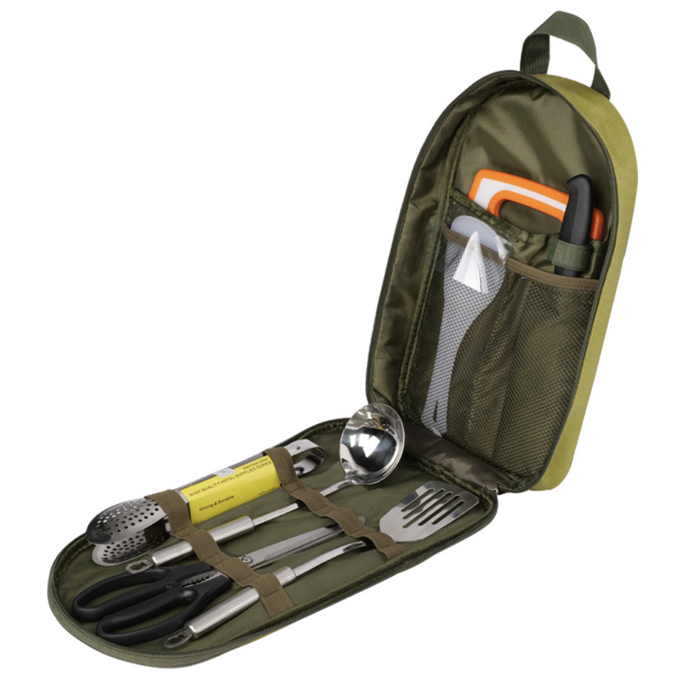 तुम्हाला बाहेरच्या स्वयंपाकासाठी आवश्यक असलेली प्रत्येक गोष्ट एका पोर्टेबल बॅगमध्ये उत्तम प्रकारे व्यवस्थित केली जाते, ज्यामुळे तुमच्या सहलींसाठी स्वतंत्र कॅम्पिंग साधने आणि उपकरणे गोळा करण्याचा त्रास दूर होतो.