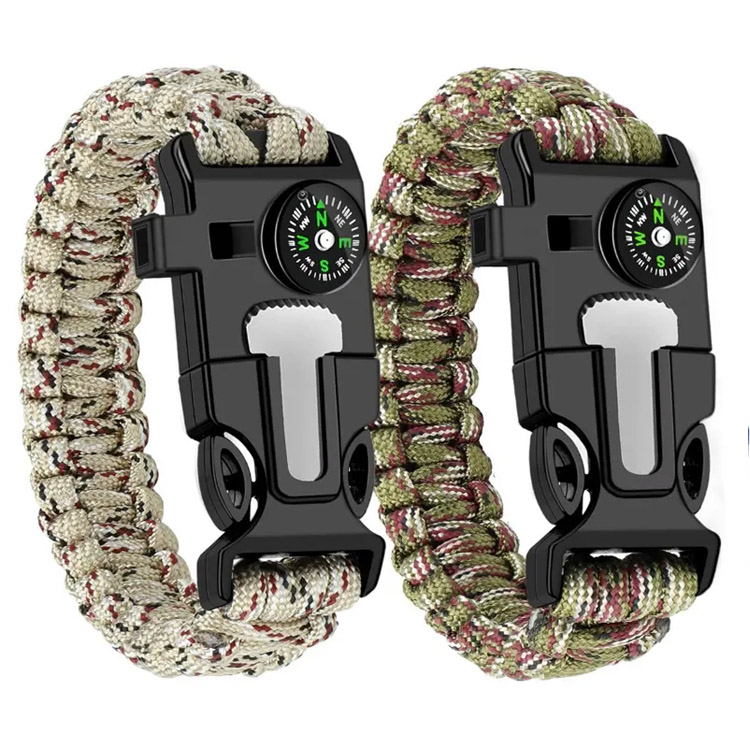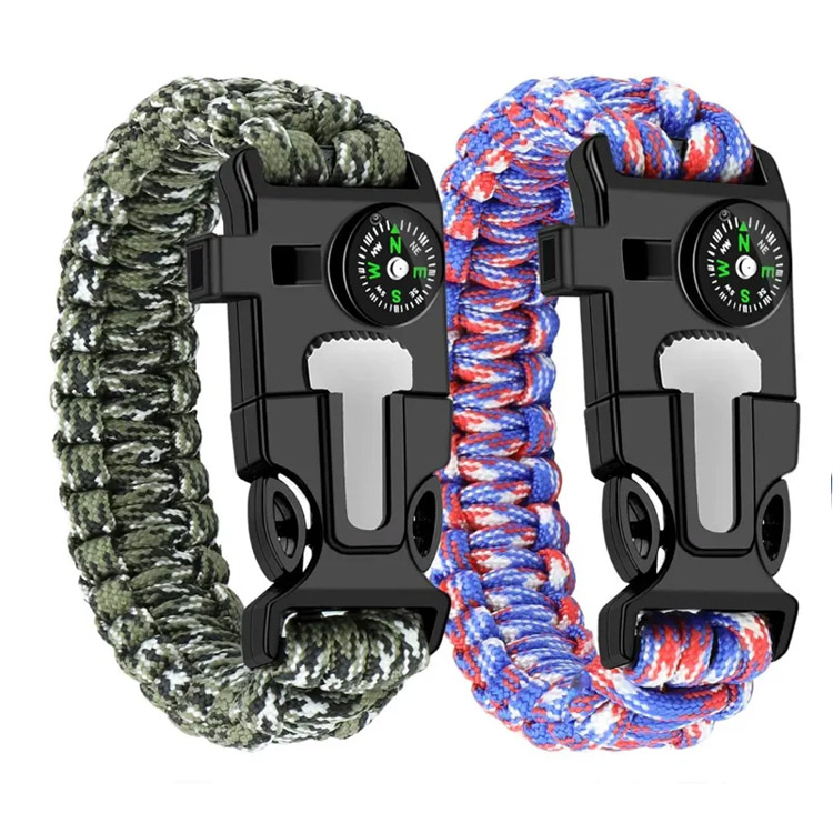 घाऊक नमुना सर्व्हायव्हल 550 LBS टॅक्टिकल पॅराकॉर्ड ब्रेसलेट. बाहेरच्या साहसांसाठी तुमचे अत्यावश्यक सर्व्हायव्हल गियर. या टॅक्टिकल पॅराकॉर्ड ब्रेसलेटमध्ये उल्लेखनीय 550 LBS ताकद आहे. कॅम्पिंग आणि आपत्कालीन परिस्थितीसाठी योग्य, हे व्यावहारिक उपयोगिता आणि स्टाइलिश डिझाइन दोन्ही ऑफर करते. मोफत सॅम्पलसह घाऊकसाठी उपलब्ध.